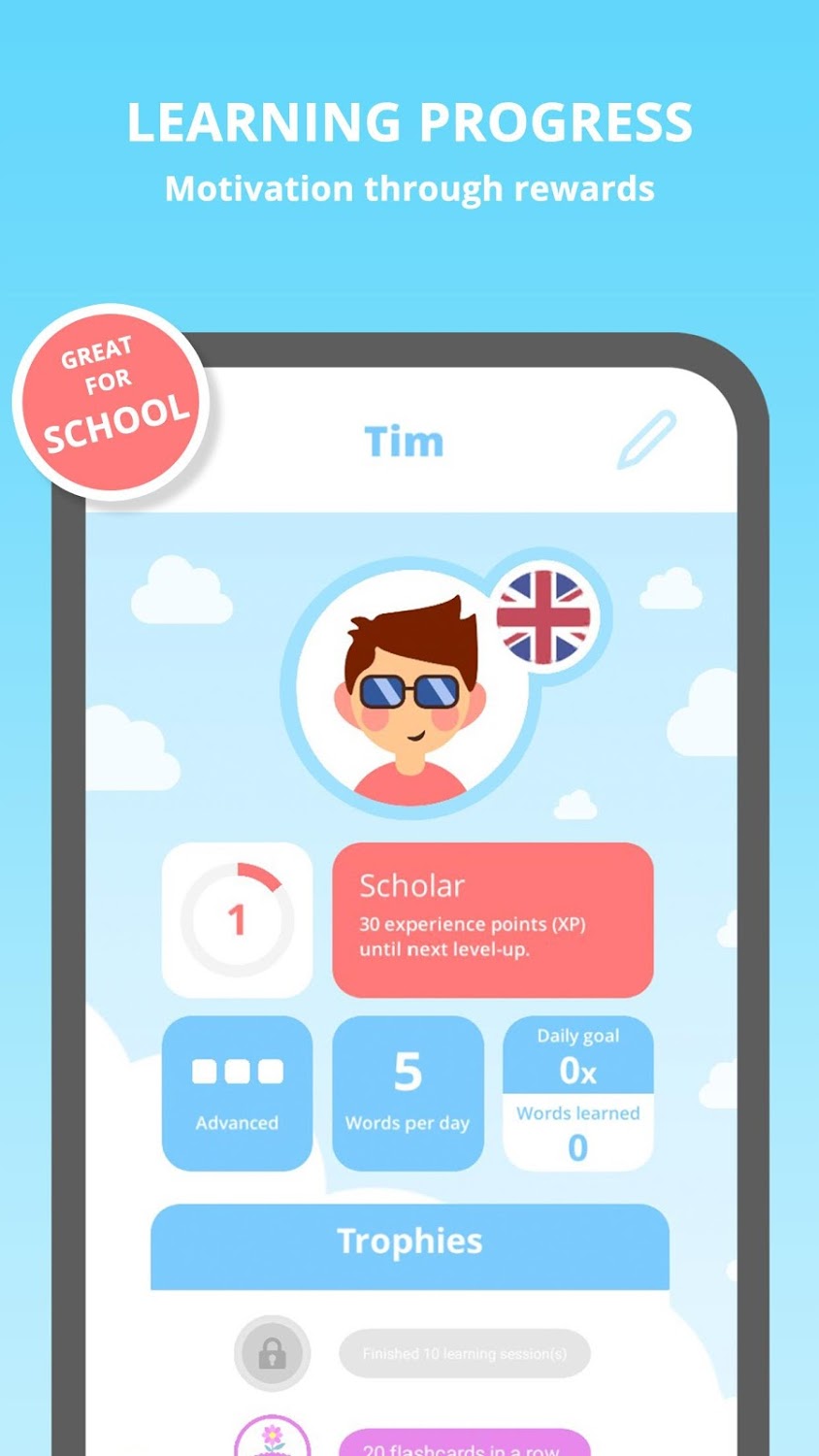 The app uses the flashcard technique to teach the English language to children all around the world.